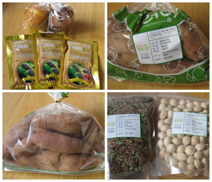 복분자, 유색미 알이 굵은 은행,간식거리 머핀 까지 넣어 주셧어요.