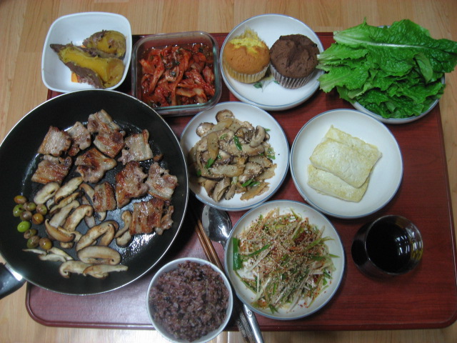 이날은 특별히 신선한 야채들이 있으니 그냥 먹기 아까워 고기를 조금 구워서 상추쌈 싸먹었어요.